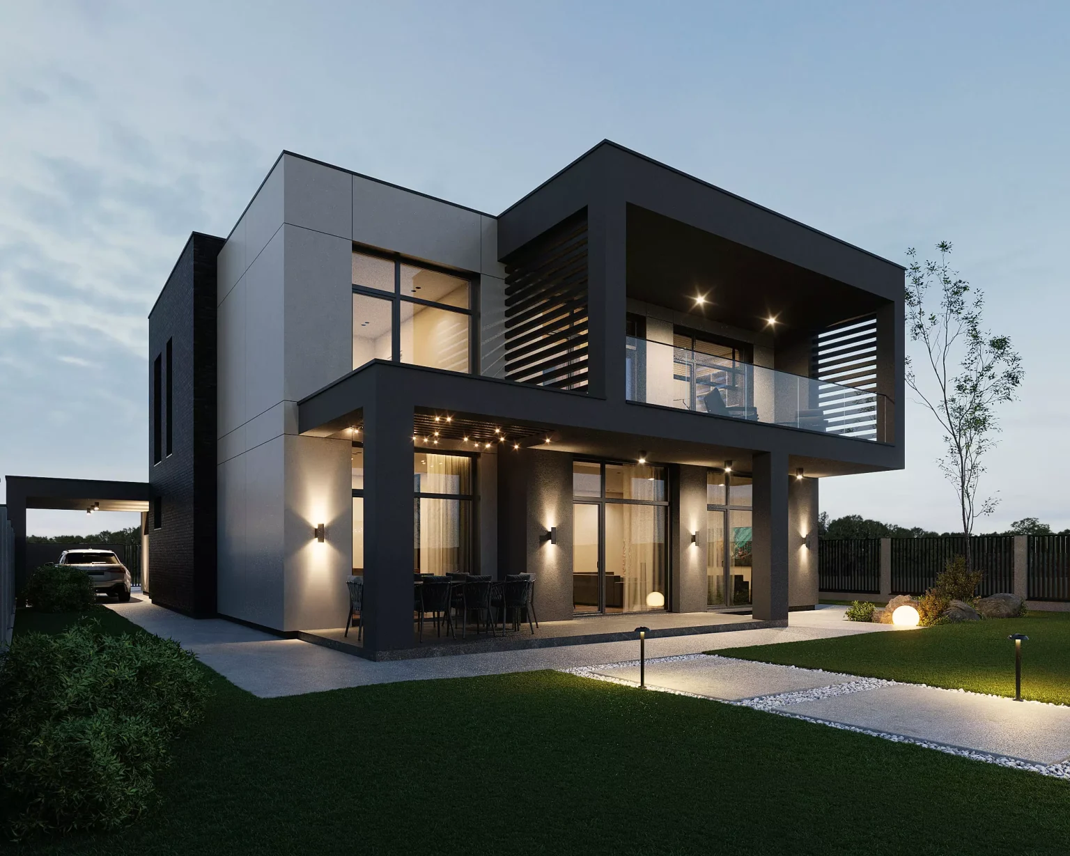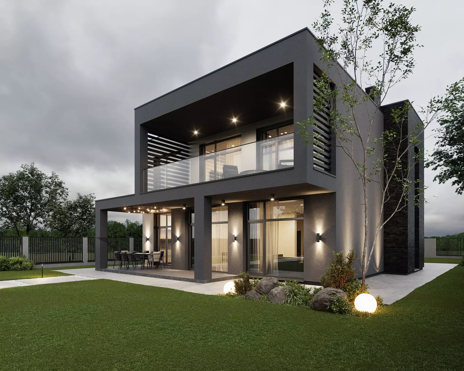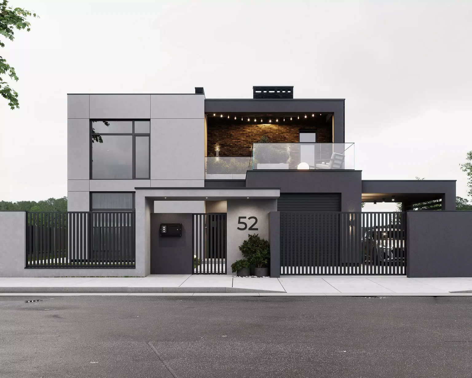 Цей будинок — втілення стриманого дизайну та функціональності. Фасад, виконаний з преміальних матеріалів, підкреслює характер та статус. Великі панорамні вікна наповнюють простір світлом, створюючи гармонію між інтер’єром і навколишнім середовищем.