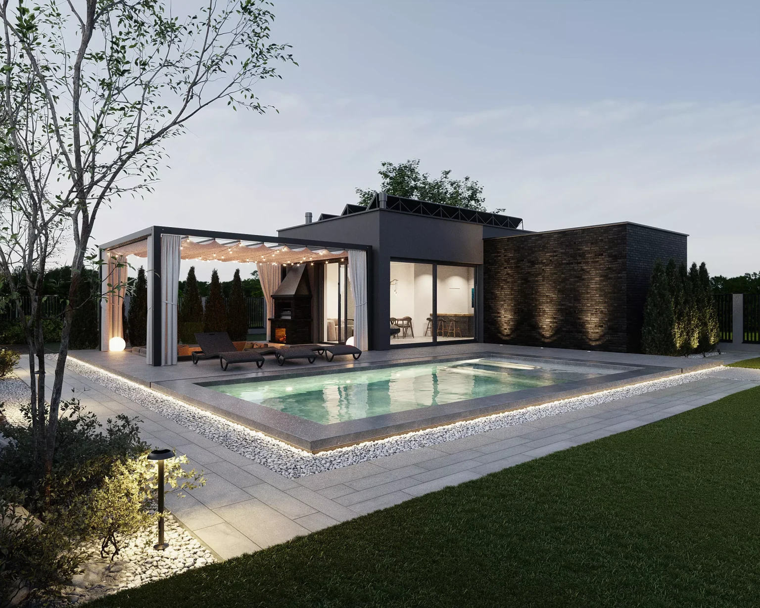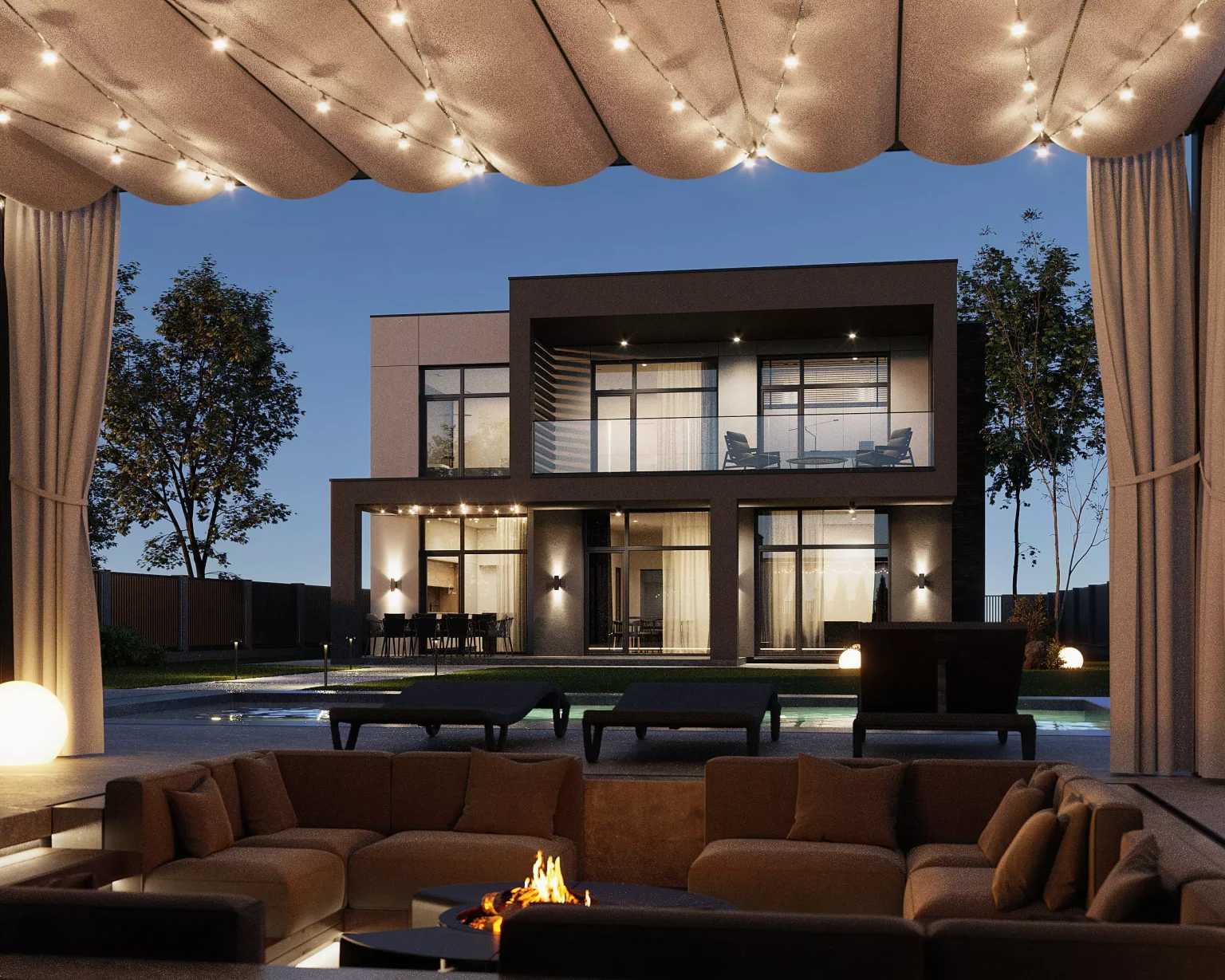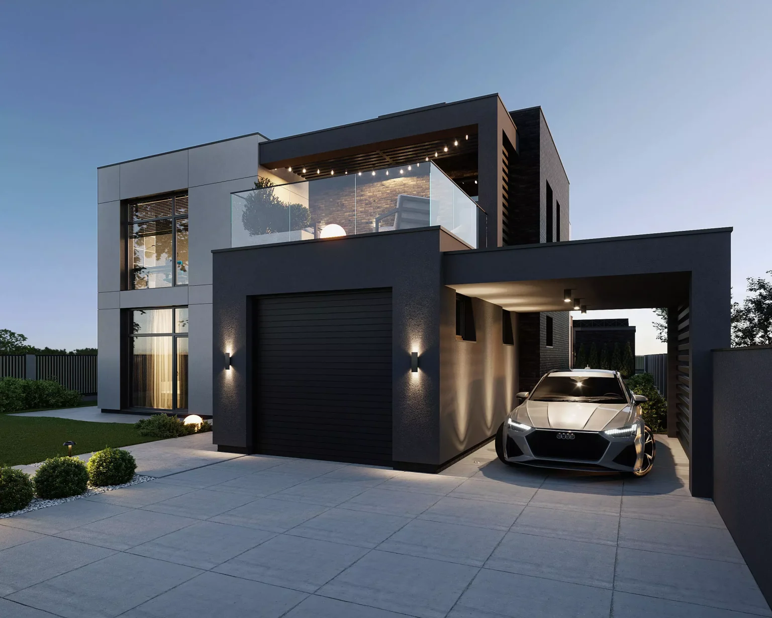 Цей будинок — втілення стриманого дизайну та функціональності. Фасад, виконаний з преміальних матеріалів, підкреслює характер та статус. Великі панорамні вікна наповнюють простір світлом, створюючи гармонію між інтер’єром і навколишнім середовищем.