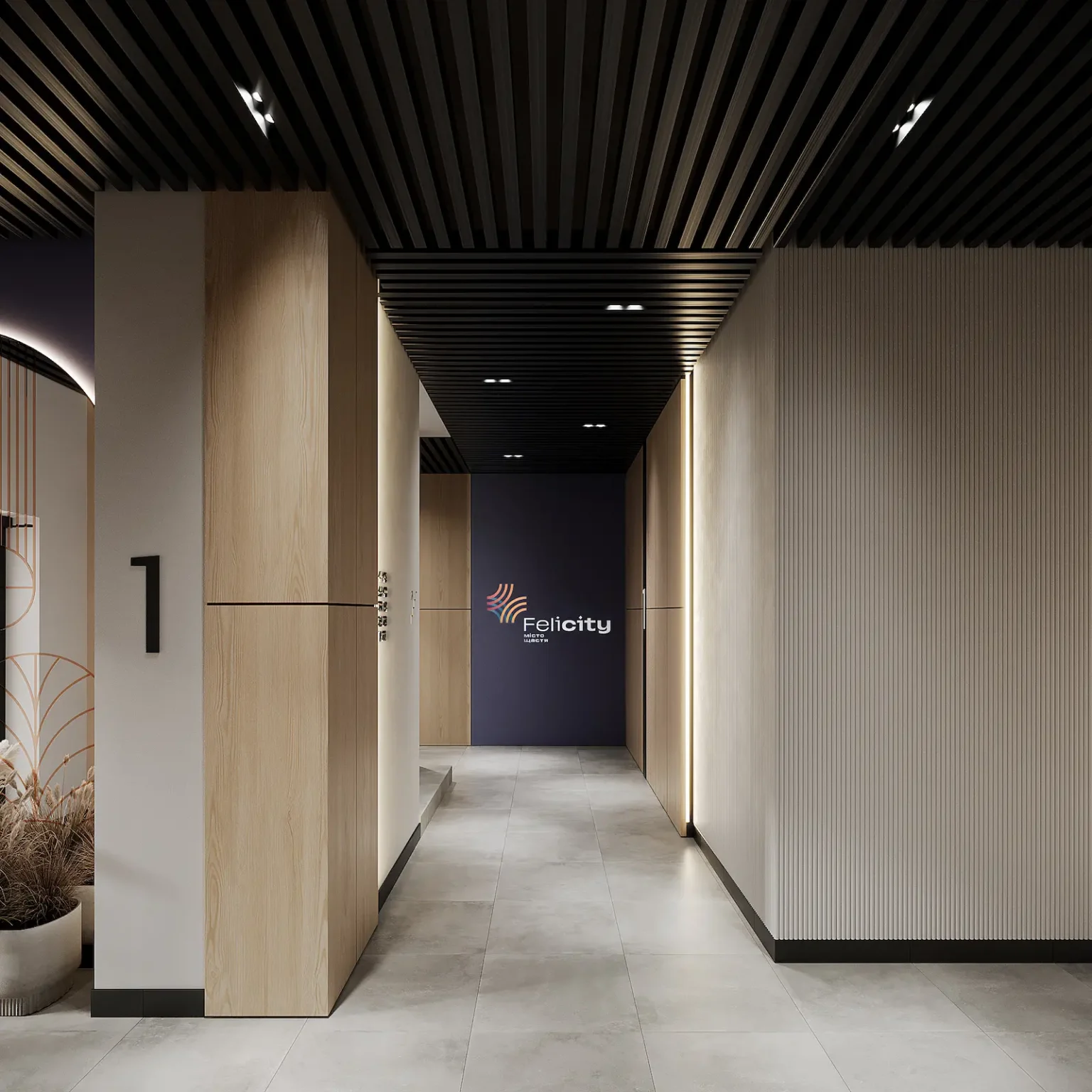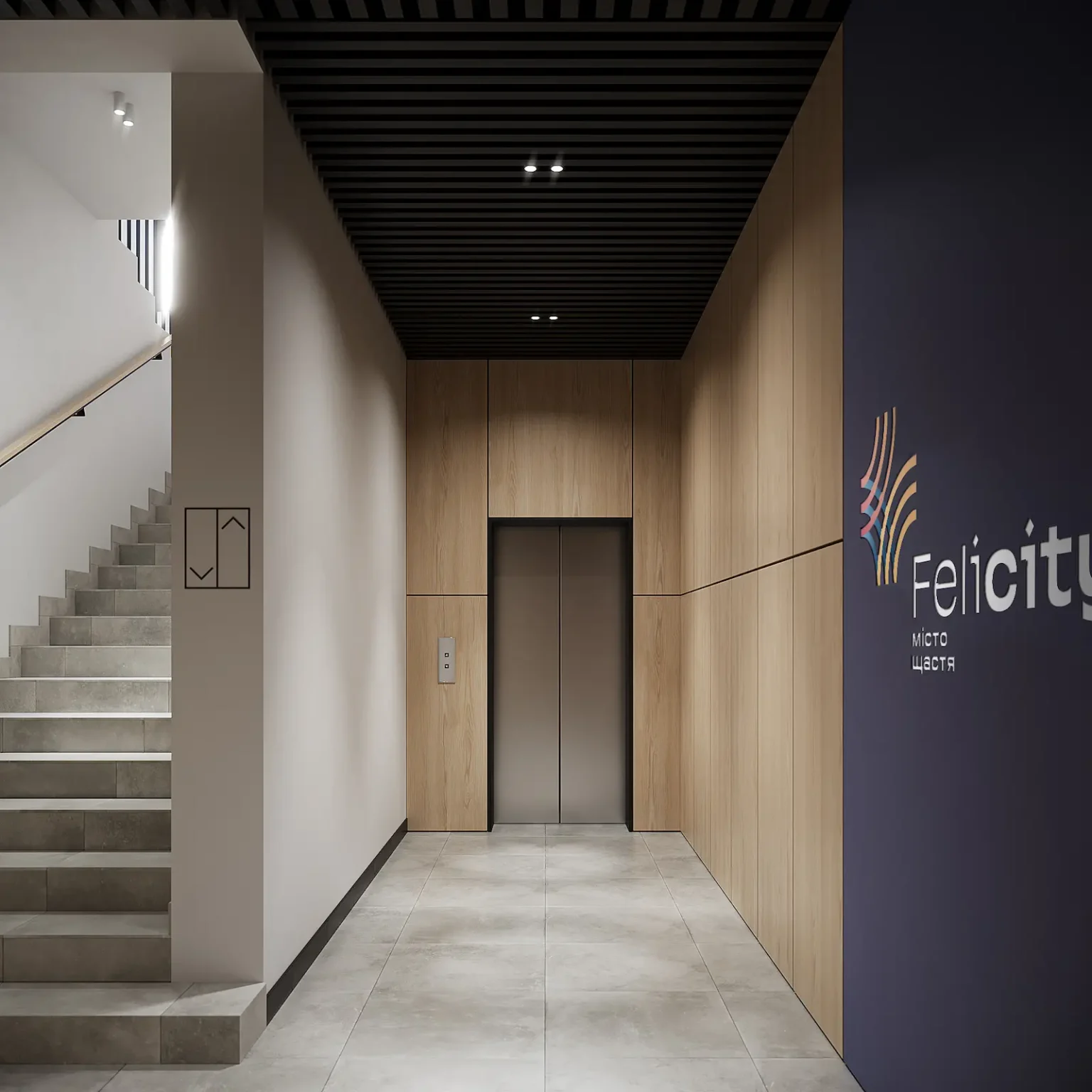 Ми розробили інтер’єр для ЖК Felicity, а саме: вестибюлю, коридорів, ліфтових холів та сходової клітки.