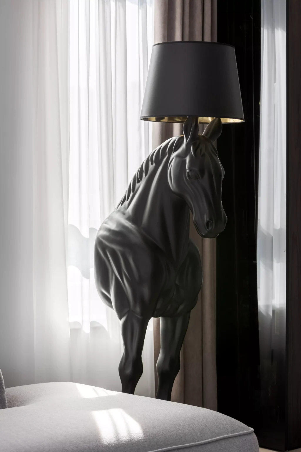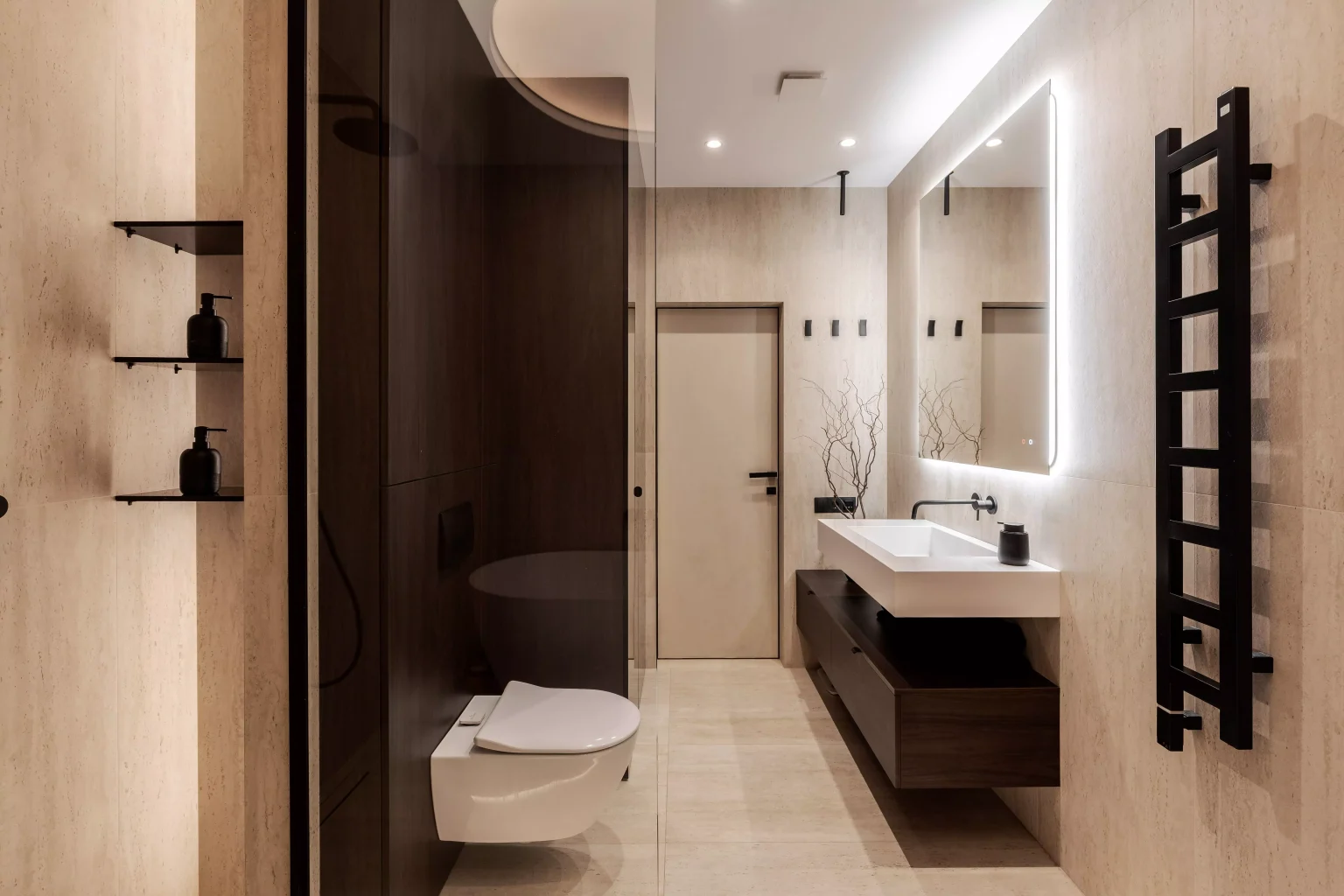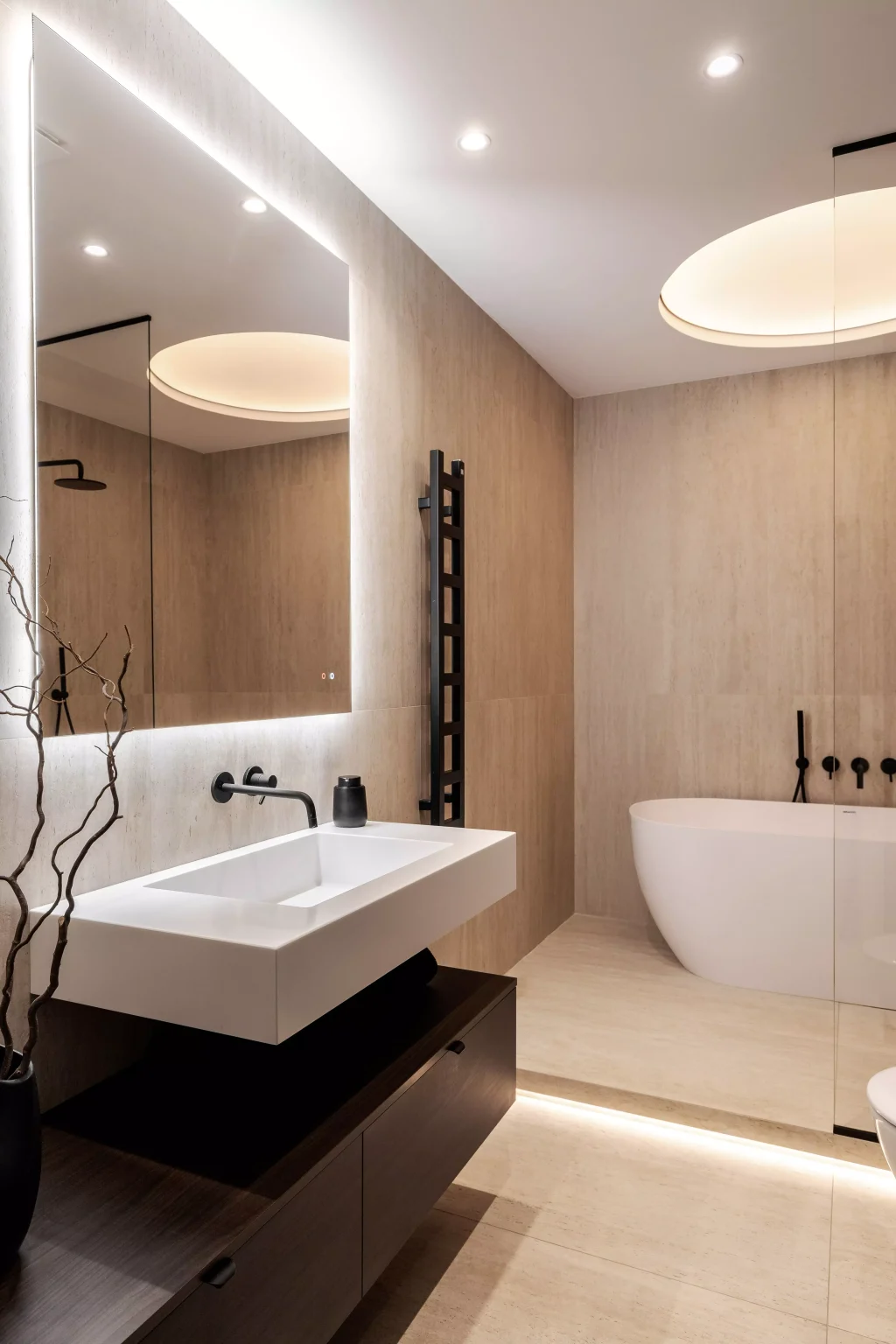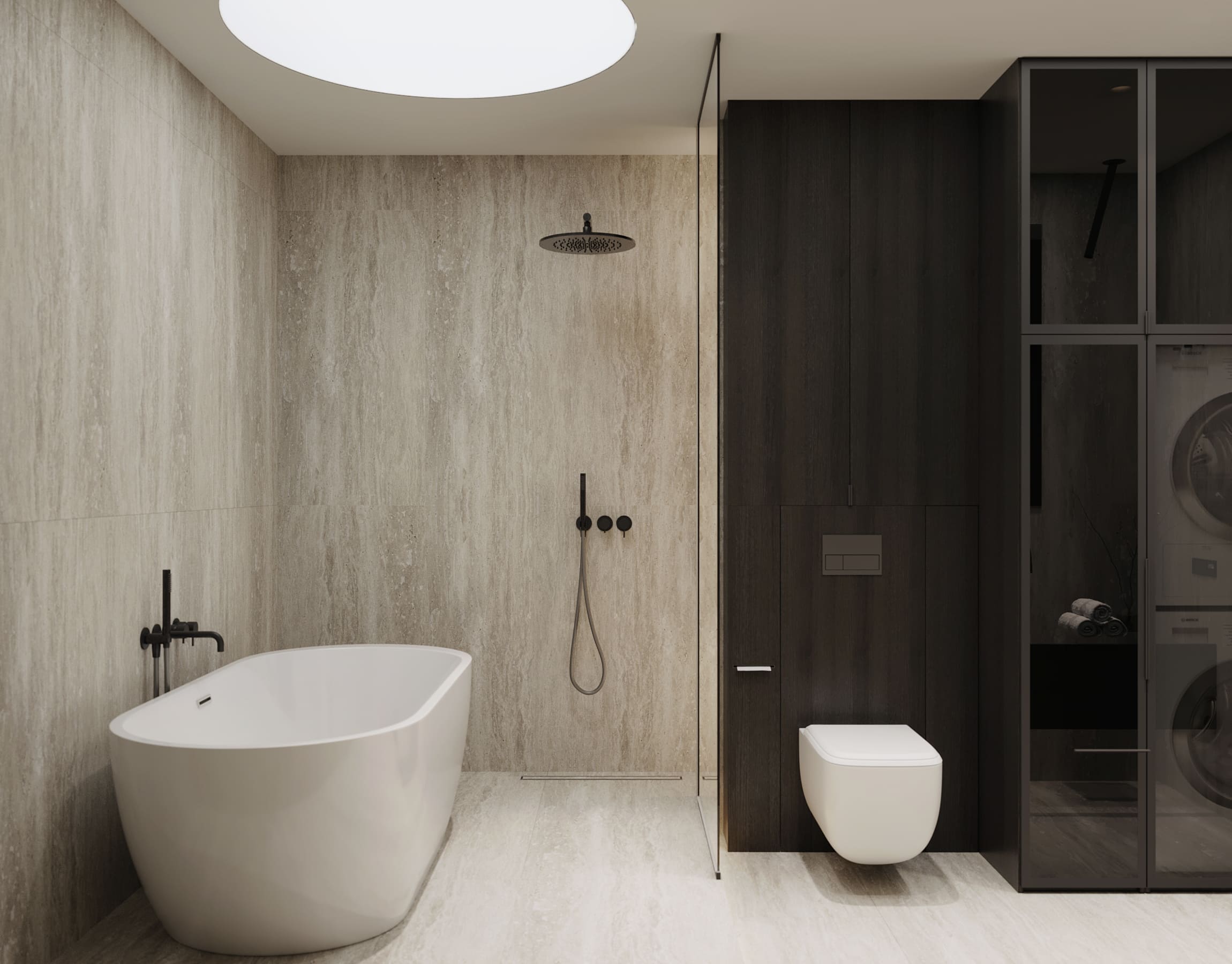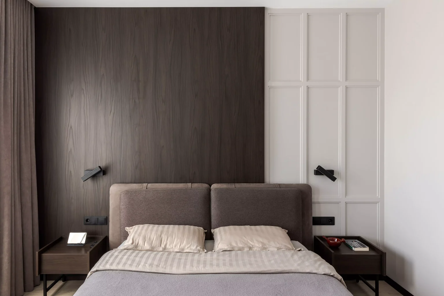 Ця квартира — втілення спокою та вишуканого мінімалізму. Простір, де архітектура поєднується з емоцією, а кожен елемент інтер’єру говорить мовою стилю та балансу. Натуральне світло м’яко проникає крізь напівпрозорі штори, огортаючи інтер’єр теплими відтінками каменю, графіту та піску.